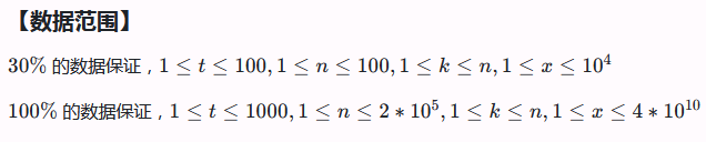 每道题目都会进行这样的一个询问:给一个数 n ,现在可以从 1 ~ n 的数字中选择任意的 k 个数相加(每个数最多只能选 1 次),能否得到指定数字 x 。
